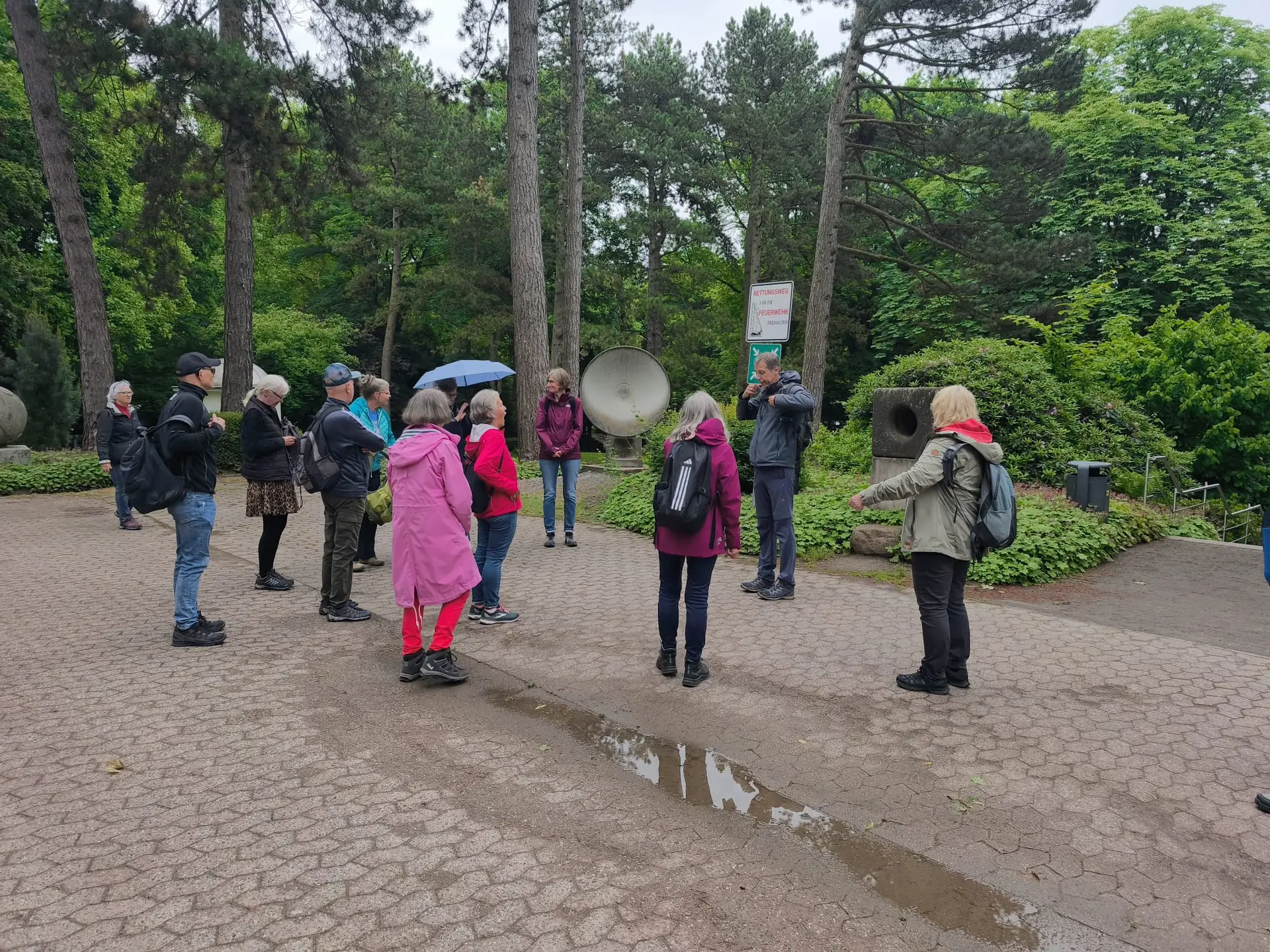 Am 29. Mai 2025 (Vatertag) trafen sich 18 Teilnehmerinnen am Bahnhof Recklinghausen und starteten ihre Wanderung um etwa 10:15 Uhr. Zunächst passierten wir das Kriegerdenkmal des Ersten Weltkriegs. Der Wanderleiter stellte eine Quizfrage: „Wie viele Namen der Gefallenen stehen auf dem Ehrenmal am Lohtor?“ – Die Antwort: 1.920 Namen.