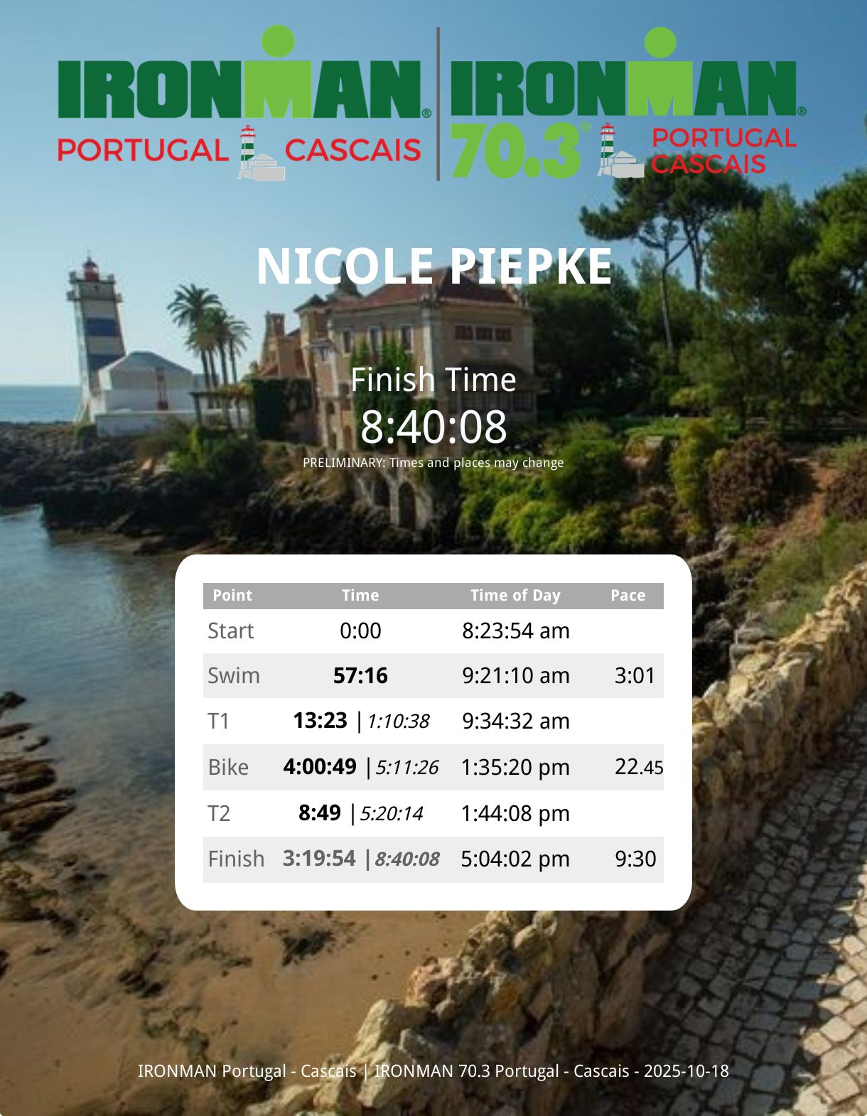 Am Wochenende vom 18. Oktober 2025  war ich beim Ironman 70.3 in Cascais /Portugal. Das war ein großes Erlebnis für mich.